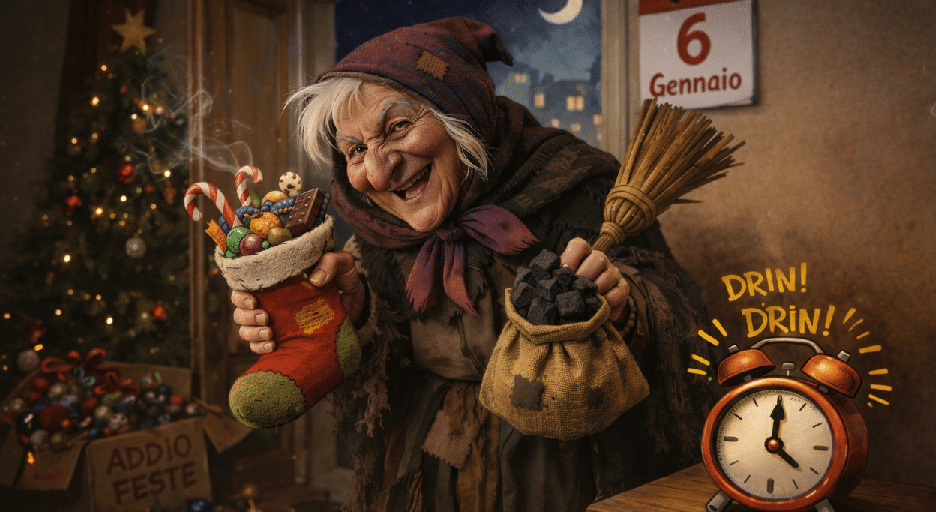 Ah, dimenticavo, Rosetta: dopo aver distribuito doni zuccherati da una parte e carbone dall’altra, distinguendo tra buoni e cattivi, fai un’ultima ripassata per tutti, gettando una polvere di equità, giustizia e solidarietà tra le persone.
