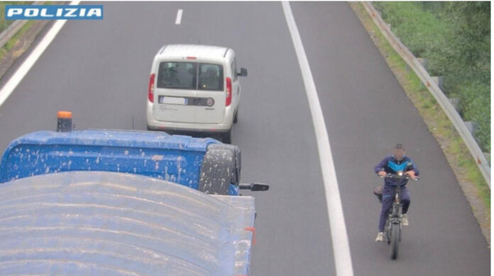 Stava percorrendo in bicicletta elettrica l’autostrada A/18, ignaro del pericolo e delle norme che vietano l’accesso ai velocipedi su arterie autostradali. È stato fermato in tempo reale dagli agenti della Sottosezione Polizia Stradale di Giardini Naxos, un uomo di 23 anni, che stava pedalando in direzione Catania, contromano ed in corsia di sorpasso, mettendo a rischio la propria vita e quella degli altri conducenti presenti in quel tratto molto trafficato. L’episodio si è verificato nei giorni scorsi, in ore antimeridiane, nei pressi dei Caselli di Giardini Naxos dell’autostrada A/18 Messina-Catania, in un punto particolarmente trafficato. Numerose le segnalazioni pervenute alla Sala Operativa della Polizia Stradale da parte di conducenti increduli che, transitando a velocità di crociera, si sono trovati davanti la sagoma di un uomo in bicicletta, in evidente stato confusionale. Considerata la condotta estremamente pericolosa che si sono trovati di fronte ed al fine di evitare ben più gravi conseguenze, gli agenti, dopo aver bloccato il traffico ed aver intimato il fermo immediato del ciclista, hanno dovuto rincorrerlo sino alla più vicina area di servizio ove lo stesso, dopo aver abbandonato il mezzo, si era riparato per evitare l’identificazione e le conseguenze sanzionatorie. Secondo quanto poi ricostruito – anche con l’ausilio delle telecamere di video sorveglianza – il ciclista si era immesso in autostrada dai caselli di Giardini per raggiungere la città di Catania essendo, a suo dire “un agente speciale e che la bici apparteneva ad un noto personaggio mafioso”. Attese le condizioni psicofisiche del ciclista, lo stesso è stato affidato alle cure del personale del 118, nel frattempo intervenuto, per essere trasportato presso l’ospedale di Taormina ove è stato, poi, sottoposto a trattamento sanitario obbligatorio.