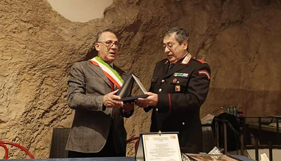 Castelmola ha reso omaggio al comandante della stazione dei carabinieri di Taormina, luogotenente Salvatore Vittorio, che dopo 30 anni d’impegno e sacrificio nel territorio del comprensorio jonico, adesso andrà a godere la meritata pensione. E nel corso di una cerimonia il sindaco Orlando Russo gli ha consegnato un attestato e la relativa targa ricordo. Il luogotenente Salvatore Vittorio è stato comandante in altre stazioni dei carabinieri, ma ha lasciato una traccia di bontà, attaccamento al lavoro e professionalità a S.Teresa di Riva, dove per tanti anni ha guidato con competenza la locale stazione dei carabinieri. A Castelmola nel corso della stessa cerimonia, è stata consegnata altra targa al nuovo comandante della compagnia carabinieri di Taormina, Domenico Tota.