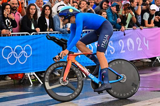 Evenepoel ha dominato sin dall’inizio chiudendo al primo intermedio con sette secondi di vantaggio sull’azzurro che ha faticato maggiormente però nel tratto più tortuoso, contraddistinto da diverse curve da affrontare sul bagnato. Al secondo intermedio erano undici i secondi su Van Aert e sedici su Ganna. Nella parte finale i lunghi rettilinei hanno permesso la rimonta dell’azzurro che ha superato Wout Van Aert conquistando l’argento a quattordici secondi da Evenepoel. Prima un rischio incredibile, con la bici che scivola nella pioggia e sbanda vicino alle transenne. Poi un ultimo settore semplicemente perfetto. Bronzo per Van Aert che è calato nel finale e ha concluso con 25 secondi di ritardo dal connazionale. Delusione per l’inglese Joshua Tarling che, dopo pochi chilometri, ha dovuto cambiare la bicicletta concludendo al quarto posto a ventisette secondi dalla vetta davanti all’americano Brandon McNulty. L’altro italiano in gara, Alberto Bettiol, ha chiuso al 18° posto in 38:06.77 (+1:54.61).