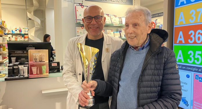 Il “Trofeo di Natale 2025” messo in palio dalla Gazzetta Jonica è stato assegnato alla farmacia Schultze del dottore Danilo Arena. Un premio riservato alla ditta, bottega, attività commerciali, rivendita, negozi che si sono distinti nello scorso anno, per bravura, competenza, professionalità e rapporti con la clientela. Tante sono state le attività commerciali visionate dai giornalisti della Gazzetta Jonica e la scelta alla fine è caduta sulla farmacia Schultze, ubicata nel centro storico di Furci Siculo, con la seguente motivazione: “Per l’impegno, la qualità del servizio e la professionalità nel rapporto con i cittadini”. E non manca mai il sorriso delle dottoresse al banco accettazione. (Nella foto il direttore della Gazzetta Jonica, Pino Prestia, mentre premia il titolare della farmacia Schultze Danilo Arena)