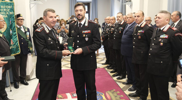 Presso la sala rappresentanza della caserma “A. Bonsignore”, sede del Comando Interregionale Carabinieri “Culqualber”, il Generale di Corpo d’Armata Claudio Domizi ha consegnato a 18 militari, di ogni ordine e grado (in servizio o in congedo), i diplomi con cui gli è stata conferita la “Medaglia Mauriziana al merito di dieci lustri di carriera militare”. Tra questi anche il luogotenente Maurizio Zinna comandante la stazione carabinieri di S.Teresa di Riva, persona di eccezionali virtù umane e professionali. Da anni al servizio nel territorio santateresino, con competenze anche a Furci Siculo e nelle frazioni, si è sempre attivato con impegno e capacità, portando in tutto il paese un’ondata di  serenità. Dopo aver prestato servizio presto la stazione di Velletri è stato trasferito alla stazione di Roccella Valdemone e dal 2008 alla comando della stazione di Forza d’Agrò, per passare poi a S.Teresa di Riva. Ha conseguito la laurea in “Scienze dell’Amministrazione” ed è stato insignito più volte per aver maturato incarichi di comando. Tale riconoscimento – istituito nel 1839 da Re Carlo Alberto di Savoia e conferito con decreto del Presidente della Repubblica, su proposta del Ministro della Difesa – viene concesso ai militari che si sono distinti maturando 50 anni di carriera militare, computati sommando gli anni di servizio con quelli svolti in comando e in missioni di pace all’estero. Inoltre, il conferimento della medaglia consente ai decorati di entrare a far parte anche dell’Associazione Nazionale Decorati di Medaglia d’Oro Mauriziana, comunemente nota con l’appellativo di “Nastro Verde”, con un chiaro richiamo al colore del nastro che la regge.