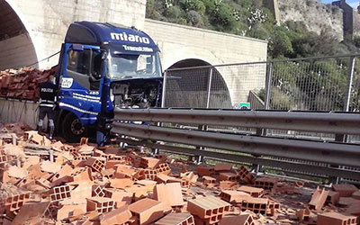 Scaletta Zanclea – Incidente senza gravi conseguenze quello che oggi pomeriggio, intorno alle ore 13, si è registrato sull’autostrada Catania-Messina. Il conducente di un tir, mentre stava per uscire dalla galleria di Piano Cutiri, intorno al km 10, per cause ancora da accertare ha sbandato per diverse decine di metri. Il pesante mezzo ha finito la sua corsa andando ad impattare contro il guard rail posizionato subito dopo l’uscita della galleria. L’impatto è stato violento. Gran parte del materiale edile che il tir trasportava si è rovesciato sul manto autostradale causando la chiusura del tratto veicolare per diverse ore.
