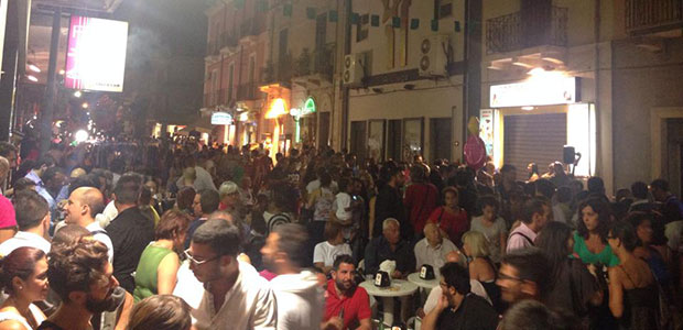 Appare tutto a poco a poco, man mano che si aggiungono gruppi sparsi provenienti da ogni parte, quando si cresce in ogni spazio della strada, dove si creano lunghe file, aggregazioni estese e spostamenti di massa in un flusso continuo in avanti e indietro, da destra e da sinistra, di lato o dal centro come una corrente a fase alternata, in opposizione, improvvisa, a scatti o lentamente, dentro una marea umana. La grande folla ha caratterizzato la notte dei cinque sensi, è spuntata d’un tratto, per la via principale della cittadina santateresina, a vivacizzare l’estate, a colorare il buio della monotonia, a spezzare il silenzio delle ore quiete. L’animazione si è intensificata sempre di più per l’addensamento delle persone in diversi punti e grazie alle offerte dell’organizzazione con artisti, musicisti, ballerine, sportivi, cultori vari ed esibizioni di natura multiforme, intente a solleticare l’interesse del pubblico di passaggio. E’ stato difficile potersi gustare qualcosa di particolare, tranne per coloro che hanno saputo selezionare tra la quantità delle proposte quella più congeniale alla propria personalità, ma per lo più si è trattato di un vero ingorgo dei sensi, rendendo ingombrante il piacere del palato e della visione, dell’udito e dell’olfatto, mischiati insieme col tatto, provocando confusione e sbandamento, desiderio e frustrazione, aspettative e delusione. E’ avvenuto tutto per contrasto senza poter cogliere l’essenziale di un evento, la bellezza di un momento, l’emozione di una partecipazione che, invece si è svolta con estrema superficialità, a vista o a pelle, per toccata e fuga, ad uso e consumo immediato, indipendentemente dalla propria volontà e prigionieri degli istinti di massa, immersi in una tempesta di attrazioni e di seduzioni!!!In questa notte, strano a dirsi, ma ha prevalso l’annientamento dei sensi dispersi: