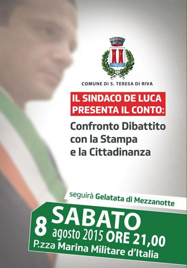 SANTA TERESA DI RIVA – Il sindaco Cateno De Luca stasera scende nell’arena per confrontarsi con stampa e cittadini in un dibattito franco e libero. Alle 21 (circa) in piazza Marinai d’Italia sul Lungomare di Bucalo il sindaco illustrerà ai santateresini i risultati raggiunti quest’anno, regalerà loro la relazione annuale che contiene (solo) le mirabilie del 2015, e poi, offrirà a tutti i presenti un bel gelato artigianale che alla fine dovrebbe mettere tutti d’accordo. E’ un confronto che De Luca tiene ormai da tre anni nel bel mezzo del programma delle manifestazioni estive: spettacolo negli spettacoli. Intanto ha approvato in giunta il bilancio preventivo 2015, in anticipo rispetto alla scadenza prevista di settembre. Il conto si chiude con previsioni di spesa per 41 milioni e 257 mila euro, quasi dieci in più rispetto al consuntivo approvato qualche mese fa. Ci sono investimenti per quasi 27 milioni di euro, 18 dei quali con mutui. Queste per grandi linee le cifre più importanti che saltano all’occhio leggendo la relazione allegata al documento che comunque quando sarà pubblicato in tutta la sua interezza dovrà essere analizzato cifra per cifra perché ci sono previsioni di entrata che sembrano un tantino utopistiche. Tuttavia la “strategia De Luca” è lanciata sulle grandi cifre, principale delle quali è quella spesa di 10 milioni per lo svincolo per il quale dovrebbe arrivare a giorni il via libera del Ministero delle Infrastrutture per affidare al comune di Santa Teresa di Riva l’incarico di stazione appaltante. Il sindaco afferma che in questo anno ha fatto “tanto, anzi tantissimo, e che salvaguardarsi la salute dovrebbe rallentare” e che per completare l’opera ha bisogno di altri cinque anni, non per forza come sindaco (ha già indicato in Danilo Lo Giudice, attuale presidente del consiglio, il delfino che gli succederà, elettori permettendo, alla guida del governo cittadino). De Luca è un ottimista, vede sempre il bicchiere mezzo pieno, ma in verità finora ha messo molta carne al fuoco con progetti che dovrebbero cambiare il volto del paese ma che sono ancora in itinere. A parte quelli che finanzierà con i mutui pagati dai cittadini. Rinviata al 2016, invece, l’armonizzazione dei conti pubblici prevista dalla normativa emanata lo scorso luglio.