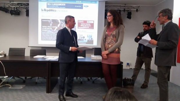 SANTA TERESA DI RIVA – E’ stato il direttore di Repubblica, Ezio Mauro, a consegnare a Cristina Orlando il premio per il secondo posto nel concorso per studenti – giornalisti ideato dal quotidiano romano. Cristina Orlando, 18 anni, lo scorso anno scolastico ha partecipato alla redazione di un giornale-laboratorio interamente on line. Nel contenitore sperimentale venivano pubblicati articoli e contributi letterari inviati da tutti gli studenti della penisola. Cristina si è’ distinta per aver firmato con il nickname ” l’eleganzadelriccio” diversi pezzi giornalistici che sono stati valutati positivamente e poi pubblicati dalla redazione centrale dell’importante quotidiano nazionale.