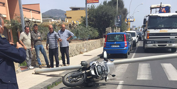 Cade un palo della luce in mezzo alla strada del lungomare. Centrata una moto, il proprietario si è salvato per puro miracolo.
