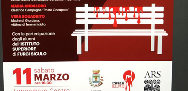 L’iniziativa, che si avvale del patrocinio del Comune di Furci siculo e dell’ARS, prevede la verniciatura di rosso di una panchina ad opera degli studenti del locale Istituto superiore e delle responsabili del Centro antiviolenza, cui seguirà una fiaccolata commemorativa. Sono previsti gli interventi del Sindaco di Furci Siculo dott. Sebastiano Foti, del Presidente dell’Assemblea Regionale Siciliana on. Giovanni Ardizzone, della dott.ssa Maria Andaloro ideatrice della campagna “Posto occupato” e della sig.ra Vera Squadrito mamma di Giordana vittima di femminicidio a S. Giovanni La Punta nel catanese, del capitano Arcangelo Maiello comandante della Compagnia dei carabinieri di Taormina, nonché della presidente dell’associazione “Al tuo fianco” avv. Cettina La Torre.