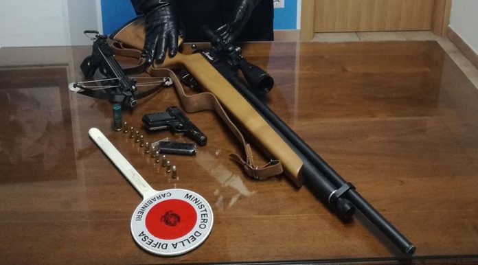 Nella circostanza veniva ritirata anche una carabina ad aria compressa a piombini e sequestrati in altro domicilio ulteriori 4 colpi calibro 7,65 ed uno calibro 12.
