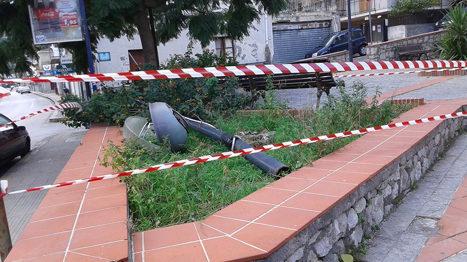 S.Alessio – Un palo della pubblica illuminazione del centro rivierasco, ubicato nella piazza A.Gussio, a causa del forte vento di questa notte, è caduto improvvisamente insieme al lampione colpendo fortunosamente solo un’auto che, in quel momento, era parcheggiata nella sottostante centralissima via Consolare Valeria che attraversa il paese del Capo. Ovviamente, il rischio di poter colpire delle persone, in modo drammatico, è stato notevole, non solo perché in quella piazza ci sono sempre dei ragazzini che vanno a giocare, ma pure per il fatto che lo slargo è attorniato di marciapiedi e c’è sempre un andirivieni di persone, in quanto un’altra strada limitrofa alla stessa piazza porta alla stazione ferroviaria ed al parcheggio comunale, sito nelle vicinanze della linea ferrata. Alla luce di quanto è successo e considerato che in quella zona il pericolo di altri pali che cadano potrebbe essere concreto, sarebbe opportuna una verifica di tutti i pali esistenti in quest’area per poter prendere atto delle condizioni di stabilità e, nello stesso tempo, mettere in sicurezza l’intero impianto della pubblica illuminazione esistente nella piazza A. Gussio.