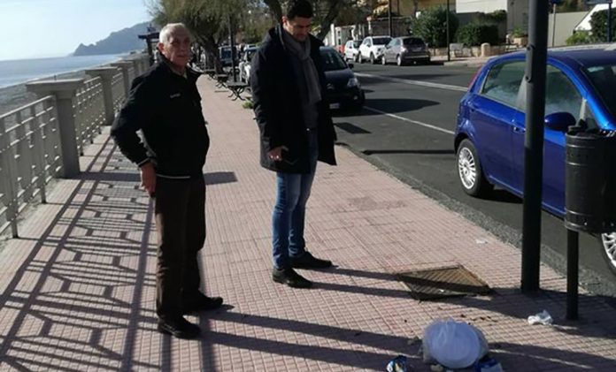 FURCI SICULO – Ogni mattina gli operai del Comune fanno il giro del paese ed ogni mattina vedono qualche sacchetto colmo di rifiuti buttato sui marciapiedi, per strada o sul lungomare. Ieri mattina la scoperta l’ha fatta il sindaco Matteo Francilia, che sta sprecando ogni energia per tenere il paese pulito, per un perfetto servizio della raccolta differenziata, per il decoro del centro abitato e delle frazioni. E quando gente incivile di notti continua a sporcare quanto di buono viene fatto durante il giorno, ecco che scatta la rabbia degli amministratori comunali e della gente civile. Ieri mattina due sacchetti stracolmi di rifiuti di ogni genere sono stati abbandonati, a distanza ravvicinata, sul marciapiede del lungomare (lato spiaggia) e gli operai prontamente sono andati a recuperarli e pulire il tratto di marciapiede sporcato. “Quattro zozzi – ha dichiarato il primo cittadino Matteo Francilia – non possono vanificare quanto di buono sta facendo questa amministrazione insieme ai dipendenti comunali e alla collaborazione della maggioranza dei cittadini. Gli incivili – ha concluso il sindaco – saranno puniti severamente con sanzioni e multe, così come è avvenuto tempo fa. Furci Siculo è la nostra casa, rispettiamola”. In attesa che il paese venga dotato di un impianto di videosorveglianza, con telecamere sparse su tutto il territorio comunale, operai e vigili urbani controllano di continuo la periferie ed il centro del paese. Però dagli ultimi accertamenti si è capito che gli incivili sporcano sempre e soprattutto il cuore di Furci, cioè il lungomare e la piazza; gente senza decoro, che sicuramente intende screditare l’attività svolta dall’amministrazione comunale. Ma fino a quando? Le telecamere sono ormai pronte per essere installate. (nella foto il sindaco Matteo Francilia osserva il sacchetto di rifiuti buttato sul marciapiede del lungomate).