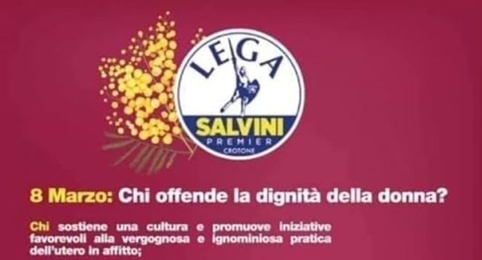 8 marzo “Chi elogia la dignità delle donne” in antitesi con quanto scritto dal manifesto dei giovani della Lega di Salvini a Crotone.