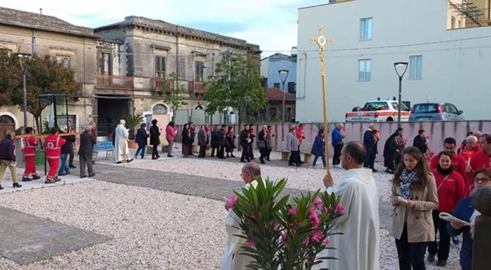 ROCCALUMERA – Tantissimi fedeli del comprensorio jonico del Messinese sono giunti ieri a Roccalumera per prendere parte ai festeggiamenti in onore della Madonna di Fatima che si venera nella chiesetta del SS: Crocifisso nel quartiere Baglio. Il parroco Santino Caminiti titolare della parrocchia Madonna della Catena ha organizzato tutto alla perfezione, disponendo la processione della Madonna per le vie del paese. Oltre ai fedeli dei Comuni limitrofi hanno preso parte le forze dell’ordine, il gruppo della Croce Rossa di Roccalumera, i volontari dell’associazione Assovolo e diversi sacerdoti del comprensorio. La statua della Madonna di Fatima è stata regalata alla parrocchia Madonna della Catena dal devoto Giovanni Mignani e sistemata nell’antica chiesetta del SS: Crocifisso. Ieri la statua è stata portata a spalla lungo la centrale via Umberto I e poi nel quartiere Baglio prima di riportala sull’altare. Mario Manganaro ed altri fedeli devoti alla Madonna di Fatima si sono alternati per portarla a spalla. La statua resterà nella chiesa Madonna della Catena per tutto il mese di maggio. Il trentuno sarà riportata a spalla nella chiesetta del SS. Crocifisso, dove resterà fino al 2020. Un rituale che si ripete annualmente e che viene seguito da tantissimi fedeli di Roccalumera e dei centri limitrofi.