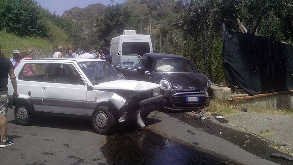 Poteva avere un bilancio pesantissimo l’incidente che, nella tarda mattinata di oggi, ha coinvolte quattro autovetture sulla strada provinciale 19 che da S. Teresa conduce fino a Savoca e Casalvecchio Siculo. Intorno alle 12.20, il conducente di una Fiat Bravo, mentre percorreva la strada in direzione mare-monti, quasi vicino al Km 1, ha sorpassato un furgone bianco impegnando la corsia opposta. Nello stesso frangente nella direzione opposta sopraggiungeva una Mini Cooper, che non ha potuto evitare l’impatto. L’urto è stato violento. La Mini Cooper senza più controllo è andata a sbattere sia contro il furgone che contro una Fiat Panda che nel frattempo si era fermata sulla carreggiata. Fortunatamente solo due feriti non gravi: A. F. 31 anni di Nizza di Sicilia che era alla guida della Mini Cooper e la conducente della Fiat Panda, una 50enne di Savoca. Sul posto due ambulanze del 118. A.F. è stato trasportato all’ospedale di Taormina per ulteriori accertamenti. Sul posto sono giunti i carabinieri della Stazione di Sant’Alessio guidati dal luogotenente Vito Calì e la Polizia municipale di Savoca dell’Ispettore Garufi Francesco per ricostruire la dinamica. La circolazione è stata bloccata per qualche ora.