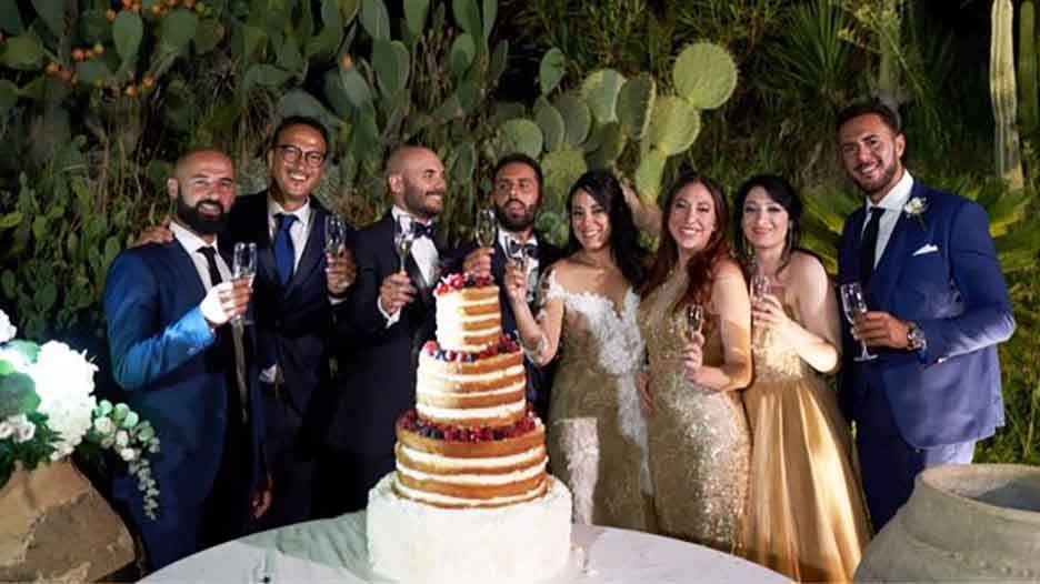 Pagliara – Nella chiesa dei Santi Pietro e Paolo di Pagliara, i parroci Santino Caminiti e Luciano D’Arrigo hanno unito in matrimonio Alessandra Savoca, psicologa, e Davide Musile, infermiere di sala operatoria. Testimoni Elio Savoca, Giulia Savoca (fratello e sorella della sposa) e Angela Frontauria e poi Giacomo Musile (fratello dello sposo), Andrea Di Bella e Francesco Cisca. Dopo il fatidico si, Alessandra e Davide hanno ricevuto parenti ed amici in un noto locale di Risposto. A coronamento di una cena a base di pesce e brindisi con Champagne, i novelli sposti hanno tagliato la torta e poi via per un lungo viaggio di nozze alle Maldive. (nella foto gli sposi, al centro, con i rispettivi testimoni)