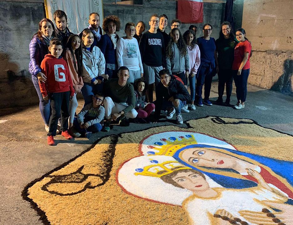 Con Maria per essere testimoni nel mondo, è questo il tema dell’infiorata voluta dalla comunità Santa Maria del Rosario in Cantidati. Molti i giovani che come sempre si prodigano nella realizzazione, l’infiorata fortemente voluta dalla commissione dei festeggiamenti, guidati dal parroco don Agostino Giacalone, è stata realizzati dai noti artisti, Lorenzo Alessandro, Saglimbene Benedetta, Sofia Leo, Natalia folti, Marco cali, con l’intervento e l’aiuto di altri molti giovani e soprattutto, delle famiglie Scarcella-Sturiale e Bellomo-Casablanca, le quali hanno curato nei minimi dettagli la splendida iniziativa. Il lavoro apprezzato fortemente dal parroco, il quale durante il passaggio della Madonna dinanzi l’infiorata, ha eccettuato ed elogiato molto il lavoro svolto dai giovani, fonte principale e viva della comunità.