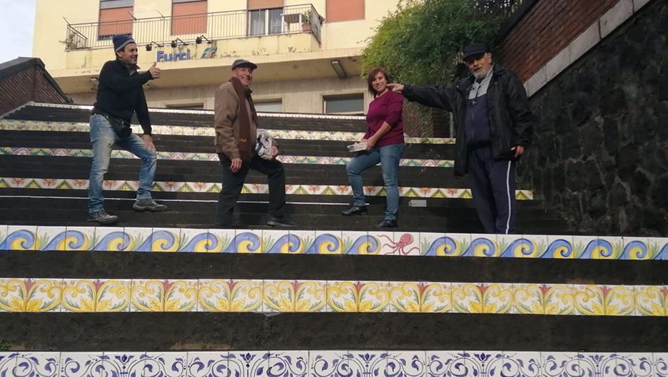 Furci Siculo – La “Scalinata della Stazione di Furci Siculo – Largo Mancuso” e successivamente battezzata “scalinata dell’amore” per via delle tante coppiette che d’estate si siedono sugli scalini magari per scamibarsi qualche bacio da anni è rimasta incompiuta . Questa rampa di scale doveva essere ricoperta e decorata con piastrelle di ceramica di Caltagirone, per dare una stupenda visione alla scalinata. E visto che il Comune in questi anni è rimasto latitante, sono stati alcuni cittadini di Furci a mettere mano in tasca e finanziare ranpa dopo rampa. Avantieri il pensionato Carmelo Cocuccio, che negli anni passati ha ricoperto pure la carica di assessore comunale, ha finanziato la copertura di un intero scalino, che l’artista Laura Allegra ha provveduto a realizzare le artistiche mattonelle che operai della ditta Arpa hanno sistemato. “Grazie a Carmelo Cocuccio per il contributo e alla ditta Arpa che ha sistemato gratuitamente le piastrelle – ha dichiarato l’assessore Giovanni Catania – il lavoro sta prendendo forma, grazie anche all’interessamento dell’associazione locale Tamaricium, che ha ideato questo percorso artistico”. E così da quialche giorno gli operai sono al lavoro per sistemare gratuitamente le piastrelle di ceranica su un intero scalino. E poi i lavori si fermeranno, finchè un altro generoso concittadino non provvederà a sovvenzionare un’altra rampa.
