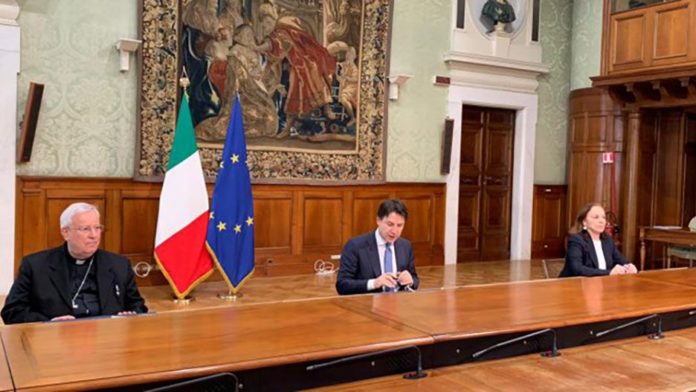 Via libera alle messe. È stato firmato questa mattina, a Palazzo Chigi, il Protocollo d’intesa tra il Governo e la CEI che permetterà la ripresa delle celebrazioni con il fedeli. Il Protocollo – firmato dal Presidente della Cei, cardinale Gualtiero Bassetti, dal Presidente del Consiglio, Giuseppe Conte, e dal Ministro dell’Interno, Luciana Lamorgese – entrerà in vigore da lunedì 18 maggio 2020. “Il testo giunge a conclusione di un percorso – sottolinea la Cei – che ha visto la collaborazione tra la Conferenza Episcopale Italiana, il Presidente del Consiglio, il Ministro dell’Interno – nello specifico delle articolazioni, il Prefetto del Dipartimento per le Libertà civili e l’Immigrazione, Michele di Bari, e il Capo di Gabinetto, Alessandro Goracci – e il Comitato Tecnico-Scientifico”.