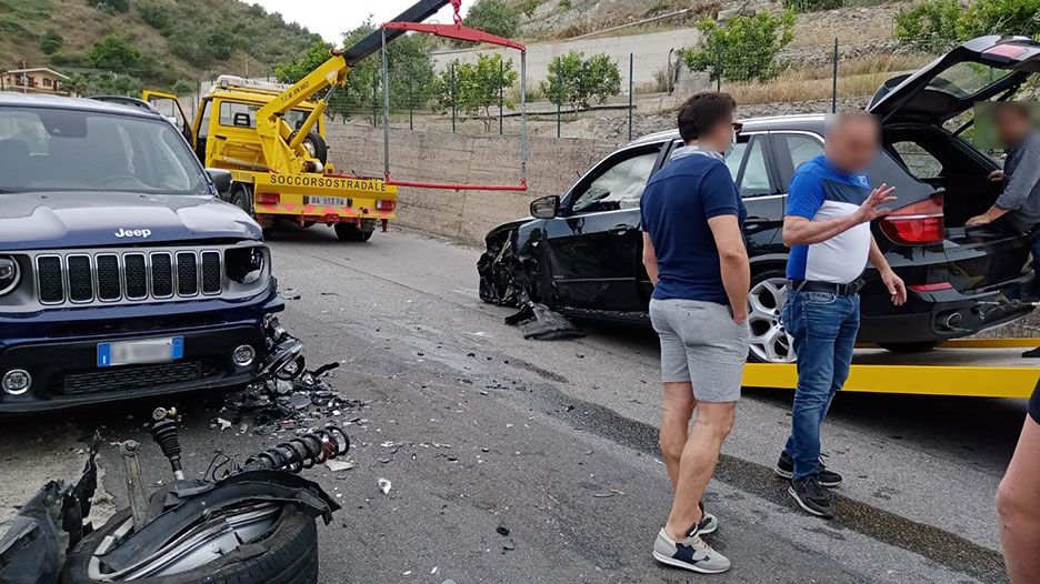 È di quattro feriti e due auto semidistrutte il bilancio di un incidente che si è verificato, oggi pomeriggio, a Santa Teresa di Riva. Intorno, alle ore 16.40, due vetture di grossa cilindrata, una Bmw station wagon e una Jeep, si sono scontrate sulla via Panoramica, nei pressi dell’abitato di Sparagonà, ad un centinaio di metri dall’intersezione con via Coletta. Secondo alcune indiscrezioni, il conducente della Bmw, mentre procedeva nel senso di marcia Messina-Catania e a ridosso di una curva, avrebbe trovato ad occupare parte della sua carreggiata la Jeep, impedendogli qualsiasi tipo di manovra per evitare l’urto. Nell’impatto, quasi frontale, sono esplosi gli airbag della station wagon che hanno attudito il colpo del guidatore, G.M., 39 anni, e della moglie I.F., entrambi di S. Teresa, mentre il conducente della Jeep, C.O. 61enne, di Limina è stato trasportato in ospedale dai sanitari del 118 insieme al passeggero, G.M. 81 anni di S. Teresa di Riva. Le loro condizioni non destano preoccupazione, fortunatamente solo un trauma toracico per entrambi. Per rimuovere i due veicoli dalla carreggiata è stato necessario l’intervento di altrettanti carroattrezzi. Sul posto anche i vigili urbani del comandante Mangiò per disciplinare il traffico ed effettuare i rilievi per capire l’esatta dinamica dell’incidente.