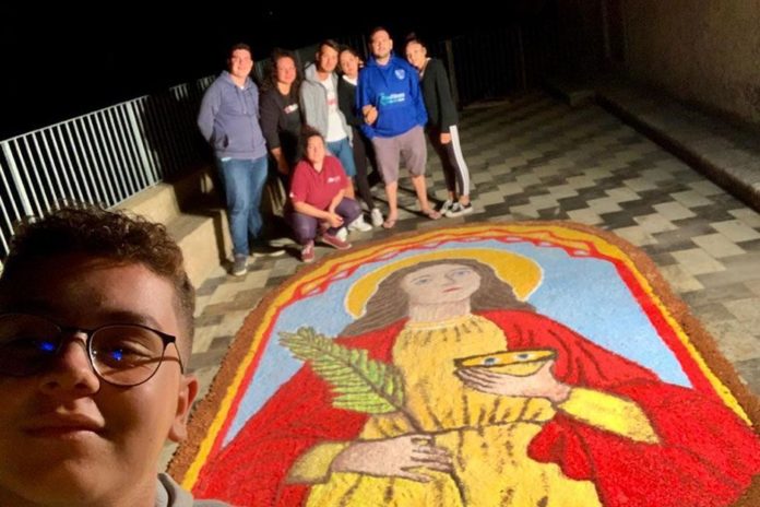 Per il secondo anno consecutivo, il giovanissimo Lorenzo Di Giovanni e Sofia Leo che hanno coinvolto artisti e giovani del luogo ha realizzato, sul sacrato della omonima e storica chiesa, una “infiorata” con l’effige della Santa.