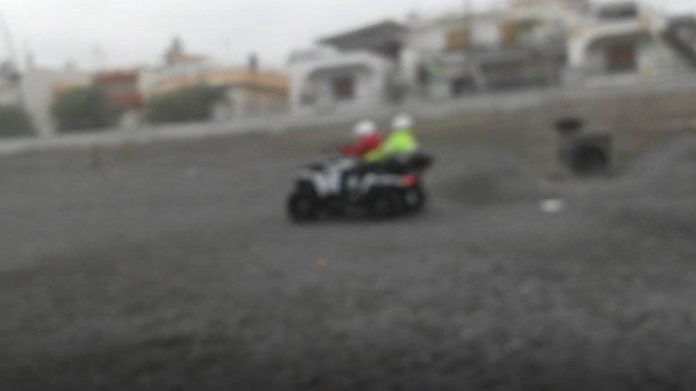 Una coppia di fidanzati a bordo di un quad ha sfidato il mare, scorrazzando vicino la battigia sulla spiaggia di Nizza. Il tempo era nuvoloso e poca gente per strada. Ad un certo punto la sabbia è sprofondata, lo scooter si è impantanato e si è fermato. Proprio in quel momento il mare si è ingrossato ed ha circondato la moto. Ammirevole l’aiuto di tante persone che dal lungomare hanno assistito alla disavventura dei due giovani. Alcune sono scese con lunghe funi, poi hanno imbragato lo scooter e insieme l’hanno tirato, trascinandolo in su mettendolo al riparo dal mare impetuoso.