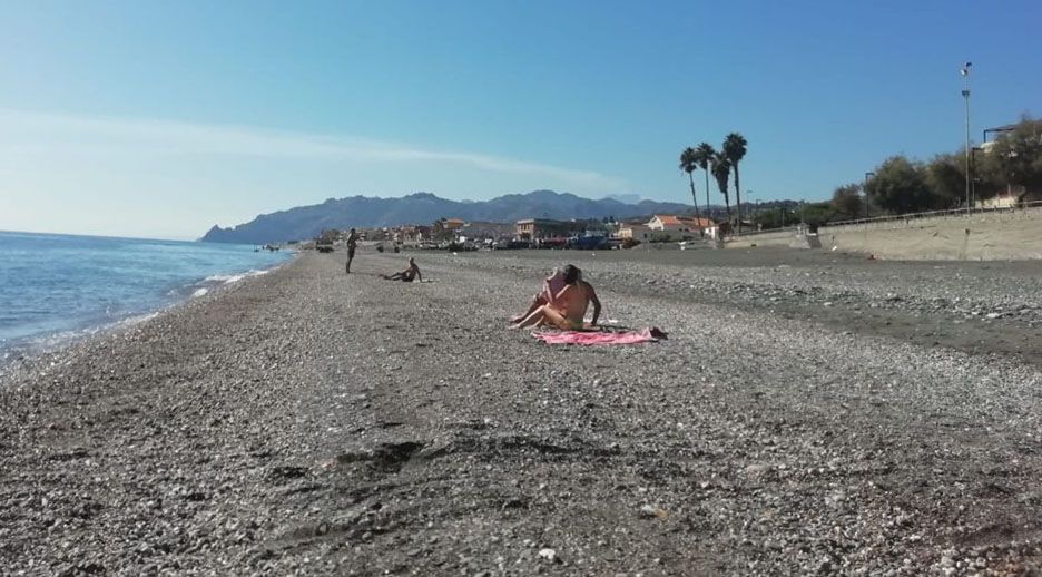Furci Siculo –Il freddo c’è, non si discute, ma ci sono anche le persone che lo affrontano e che addirittura si presentano in costume sulla spiaggia per catturare i raggi calienti del sole siciliano. A Furci sulla battigia, vicino al mare, alcune coppie si sono lasciate baciare dal sole. Non si sono tuffate, però le caviglie in acqua le hanno messe. La novità? Siamo in pieno inverno e il caldo impazza. Siamo in pieno inverno e c’è chi si mette in costume e va sulla spiaggia. Scene impossibili negli anni passati. Sta cambiando qualcosa?