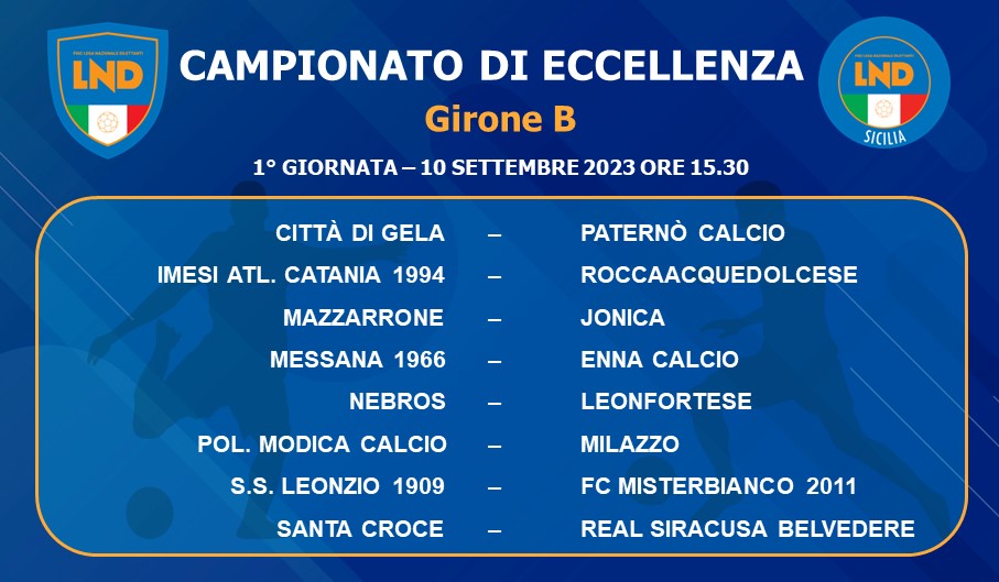 La Lnd Siciliana ha reso noto i gironi ed i calendari dei campionati di Eccellenza e Promozione. Si partirà il 10 settembre. Partiamo dal campionato di Eccellenza che vede impegnata la Jonica di S.Teresa. La compagine del neo allenatore Giuseppe Furnari e di mister Enzo Famulari esordirà in casa del Mazzarrone. Una gara impegnativa su di un campo difficile. Per i giallorossi sono arrivati un paio di calciatori importanti nel mercato estivo, ultimo l’argentino trequartista Ariaudo Facundo. Ma anche il giovane attaccante Emanuele Spanò e l’esterno Goiele Verdura per una squadra che punta a fare un buon campionato. C’è anche molta attesa per il match tra Città di Gela – Paternò Calcio.