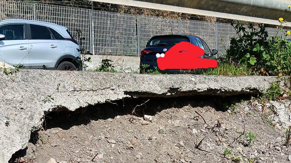 S.Alessio Siculo – C’è un angolo del paese dove si dovrebbe intervenire con urgenza per evitare possibili incidenti. Due sono le precarietà che potrebbero sfociare in improvvisi sinistri: la strada che porta alla stazione ferroviaria e il parcheggio adiacente. Tutta la struttura in cemento è lacerata con evidenti crepe, ben visibili, sarebbe opportuno che l’ufficio tecnico del Comune verificasse la stabilità della strada e della zona parcheggio per prevenire gravi incidenti.