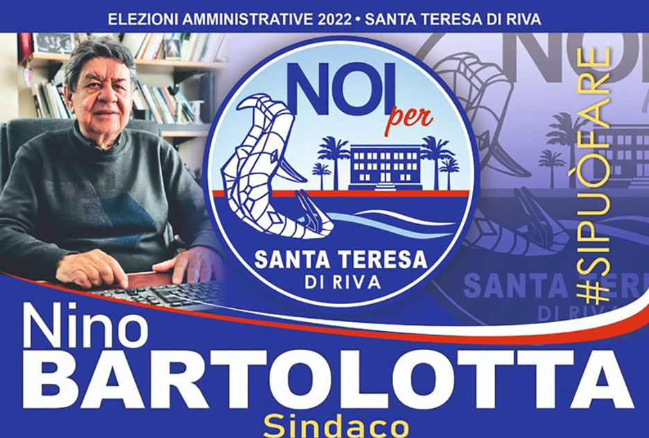 S.Teresa di Riva – Dopo il comunicato di Santino Veri e Maria Cristina Pacher, che hanno specificato di aderire al “progetto politico del candidato sindaco Nino Bartolotta”, è stato diffuso il logo ufficiale della lista. Il titolo è “Noi per Santa Teresa di Riva” con la foto del candidato sindaco Nino Bartolotta e con la scritta “Si può fare”. Dopo aver risolto il nodo delle quote rosa, sembra che la squadra sia al completo e tra qualche giorno  potrebbe essere presentata alla cittadinanza.