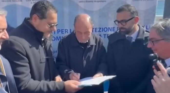 “Ecco la firma, ecco fatto. Buon lavoro”. E poi è partito un lungo applauso.  La pagina di cronaca più importante vissuta questa mattina sul lungomare rappezzato di S.Teresa di Riva, dove il presidente della Regione, Renato Schifani ha firmato e consegnato i lavori, davanti al sindaco Danilo Lo Giudice “per la difesa della costa di S.Teresa di Riva”. Un passo importantissimo per il completamento dell’iter delle pratiche necessari per l’accredito dei finanziamenti e l’inizio di tutte quelle opere necessarie per mettere a norma il lungomare di S.Teresa. Una sola considerazione: Nel mentre, sostengono alcuni pescatori che vivono esclusivamente pesca, sarebbe opportuno realizzare un varco a piazza mercato, dove si trovano ancorati da circa un mese imbarcazioni e pescherecci.